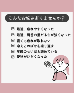 更年期、疲れ・肩こり頭痛、便秘…